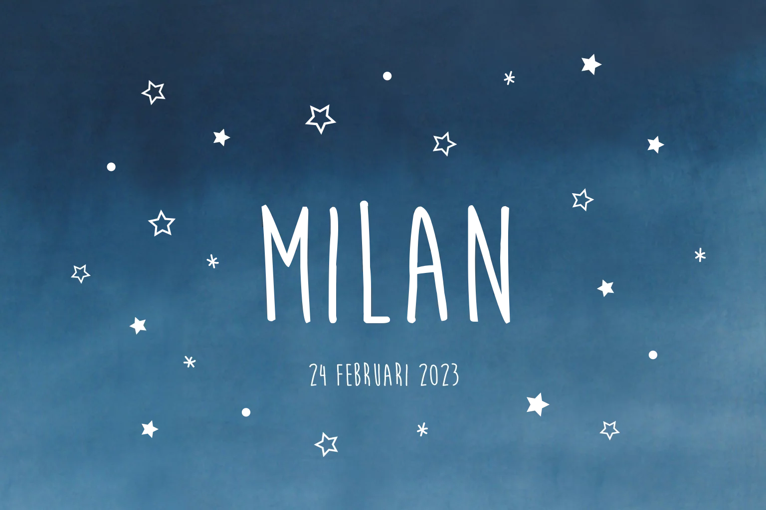 Geboortekaartje jongen donkerblauw met sterrenhemel goudfolie