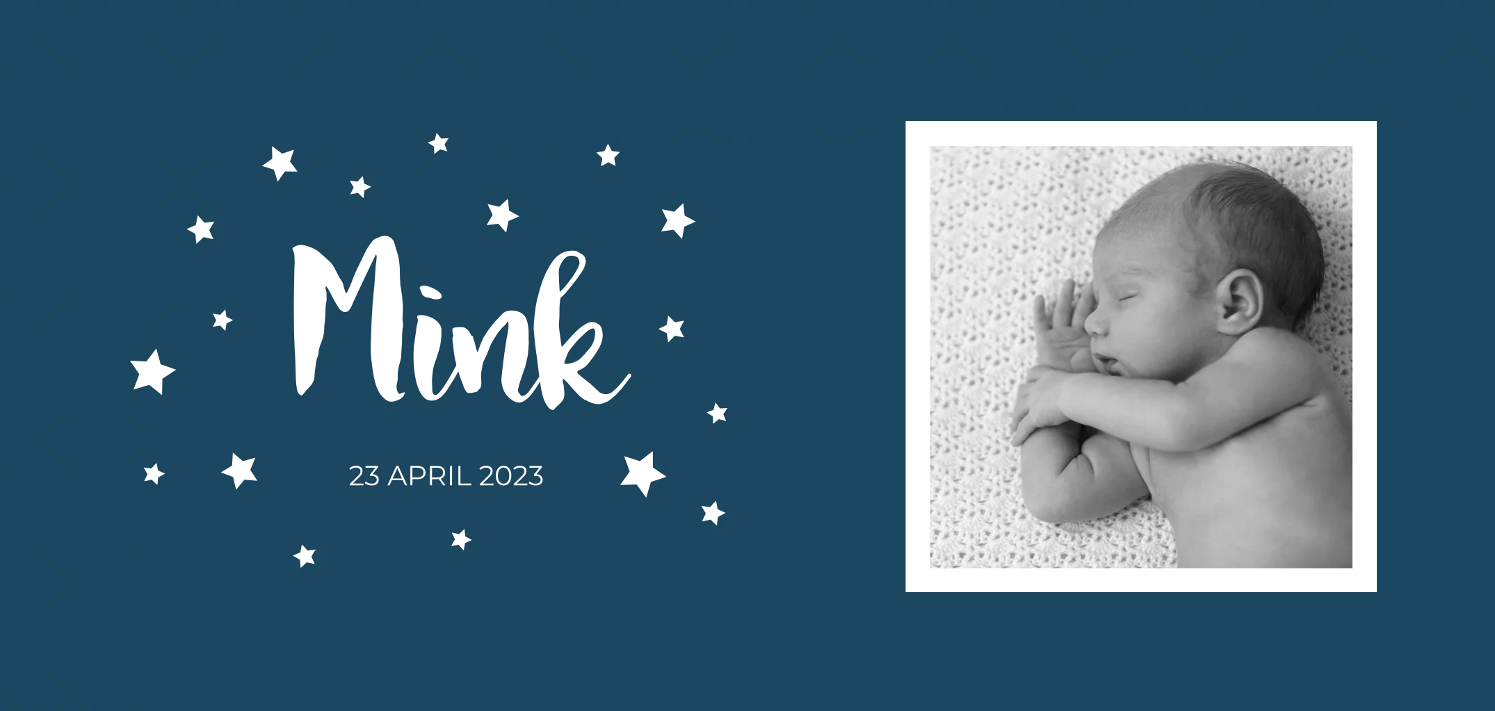 Stoer donkerblauw geboortekaartje voor een jongen met witte en gouden sterren. De foto op de kaart kun je vervangen door een foto van jullie kleintje. Klik op de foto om deze te vervangen. De kleur van de kaart en de folie kun je naar wens aanpassen. Tip: de foto op de kaart kun je ook vervangen door een los DIY fotokaartje die je vast kunt maken met bijvoorbeeld een paperclip!