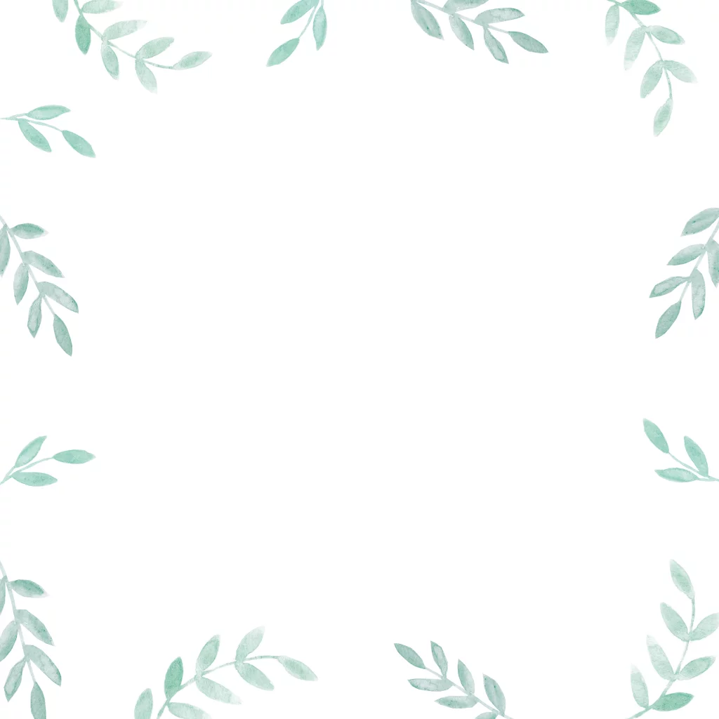 Dubbel gevouwen kaartje met een rand van groene watercolor takjes en goudfolie. Aan de binnenzijde is er ruimte voor een gedichtje. Pas de kleur van de folie naar wens aan in de editor.