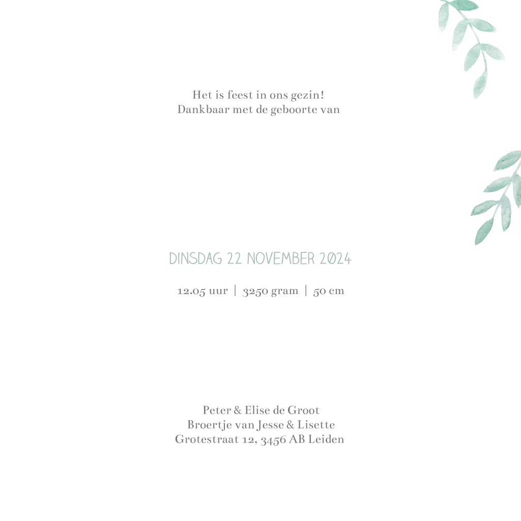 Geboortekaartje jongen botanisch met takjes en goudfolie