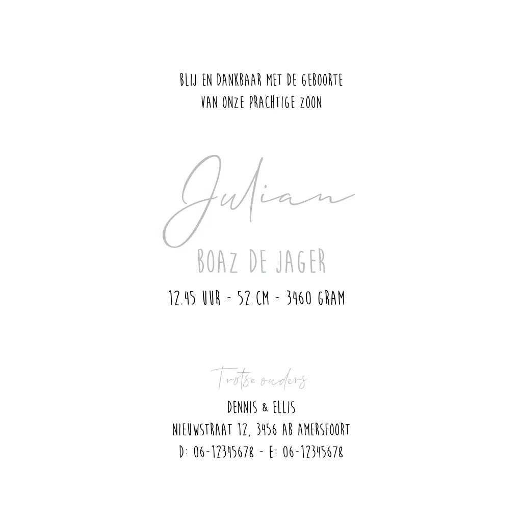 Unieke geboortekaartjes voor een jongen om zelf aan te passen