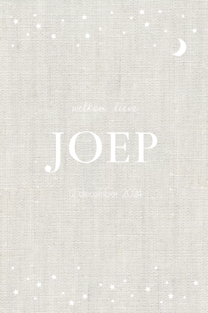 Dit lieve geboortekaartje met een sterrenhemel past helemaal bij de trend en heeft ronde hoeken. De achtergrond heeft een linnen look. De kleur van de folie en de kaart kun je naar wens aanpassen.
