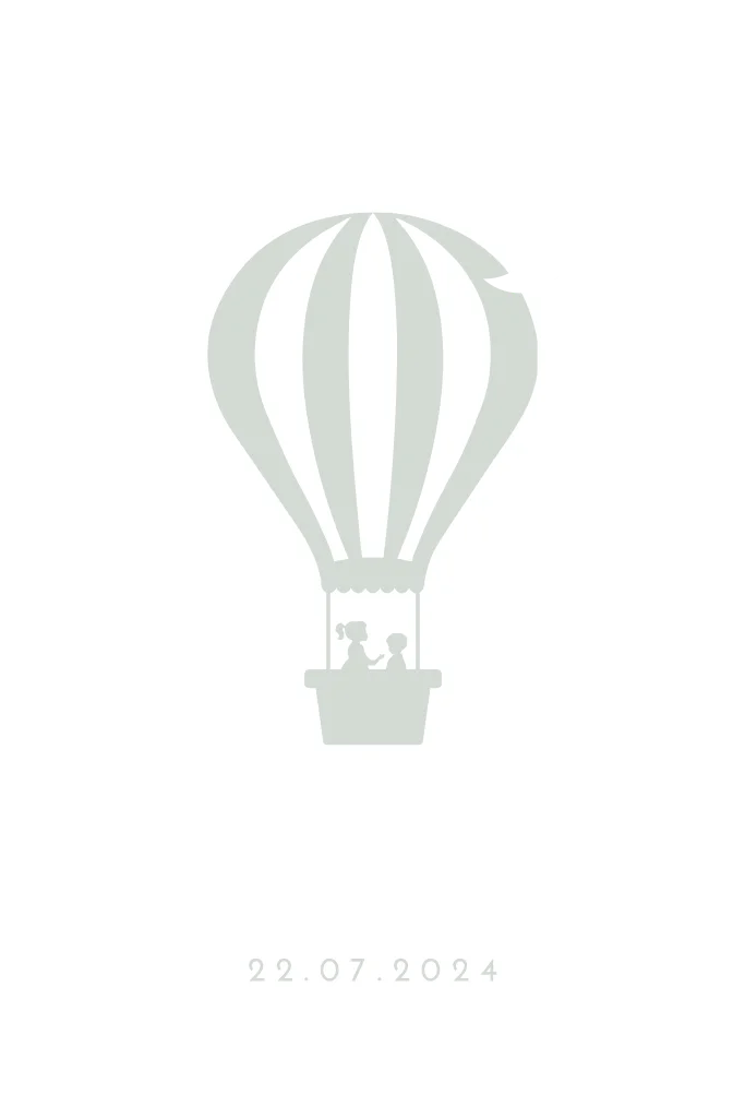 Dit lieve geboortekaartje heeft een silhouet van een luchtballon, goudfolie en ronde hoeken. De kleur van de folie en de kaart kun je naar wens aanpassen.