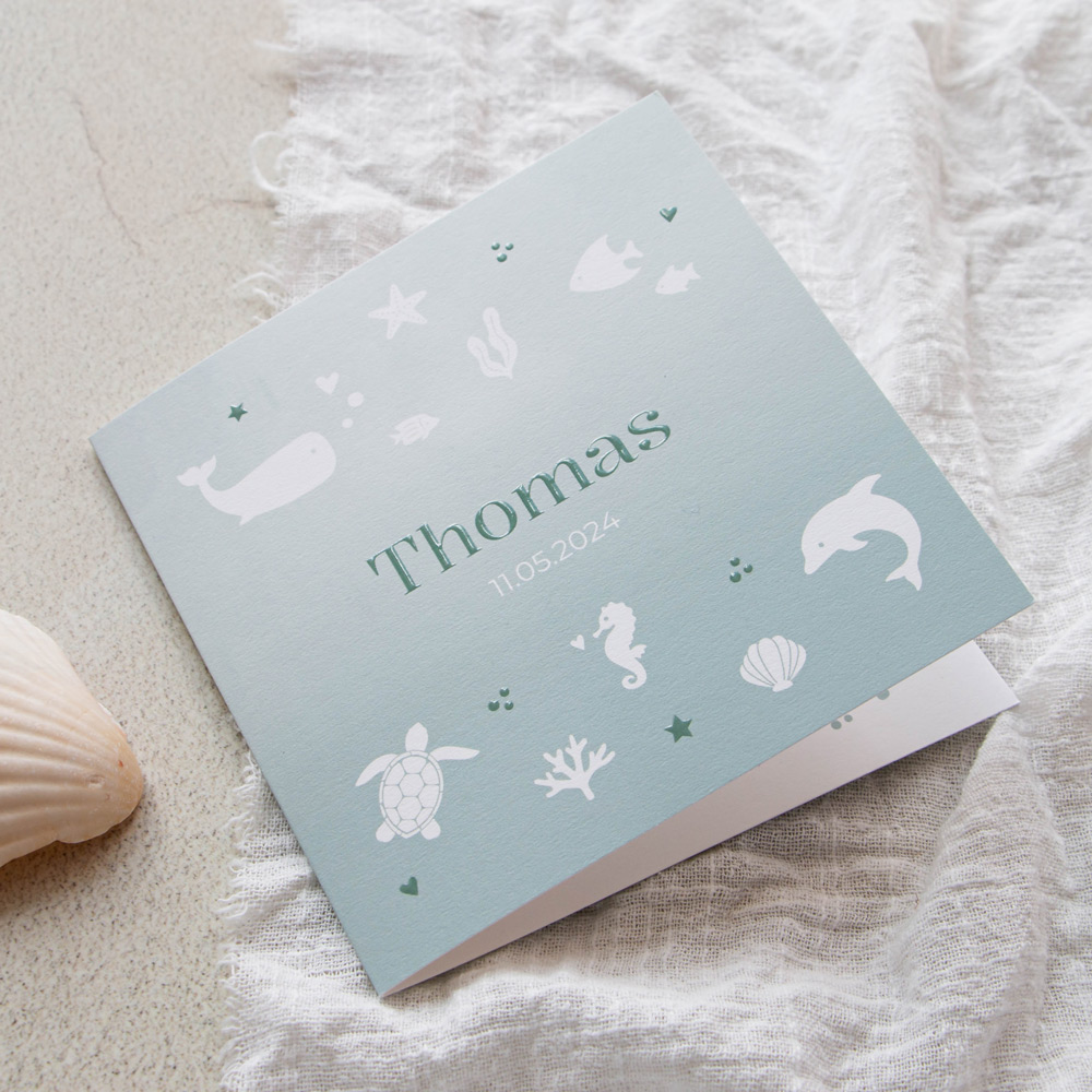 Geboortekaartje jongen oceaan zeedieren schildpad