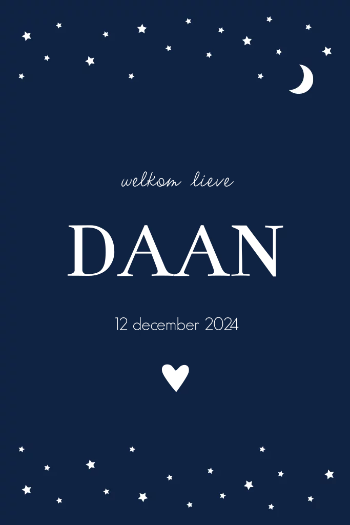Geboortekaartje jongen donkerblauw sterrenhemel met goudfolie