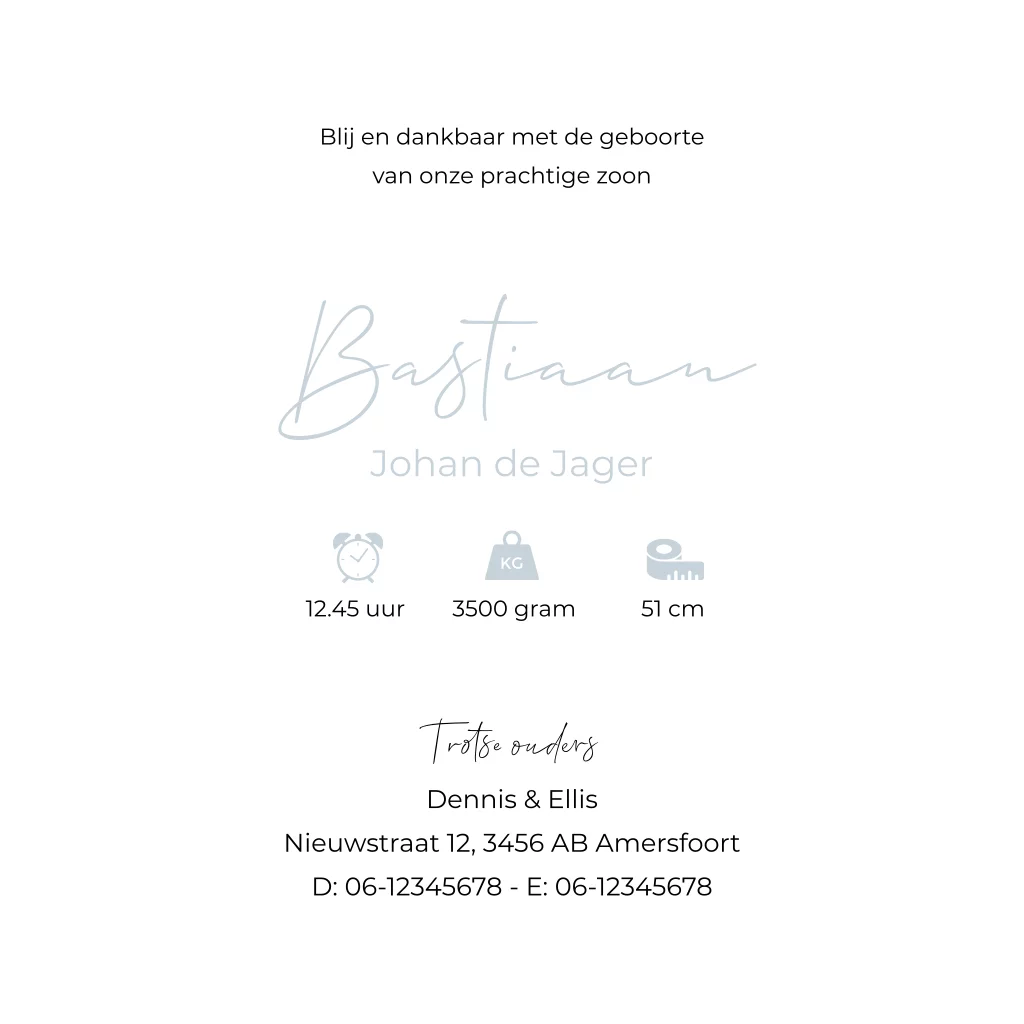 Unieke geboortekaartjes voor een jongen om zelf aan te passen