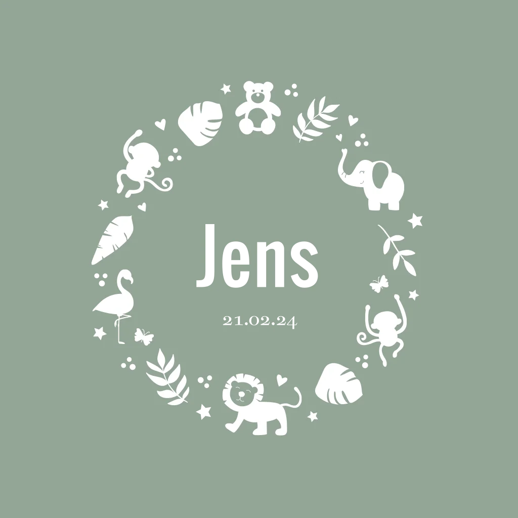 Geboortekaartje jongen groen met jungle dieren en goudfolie
