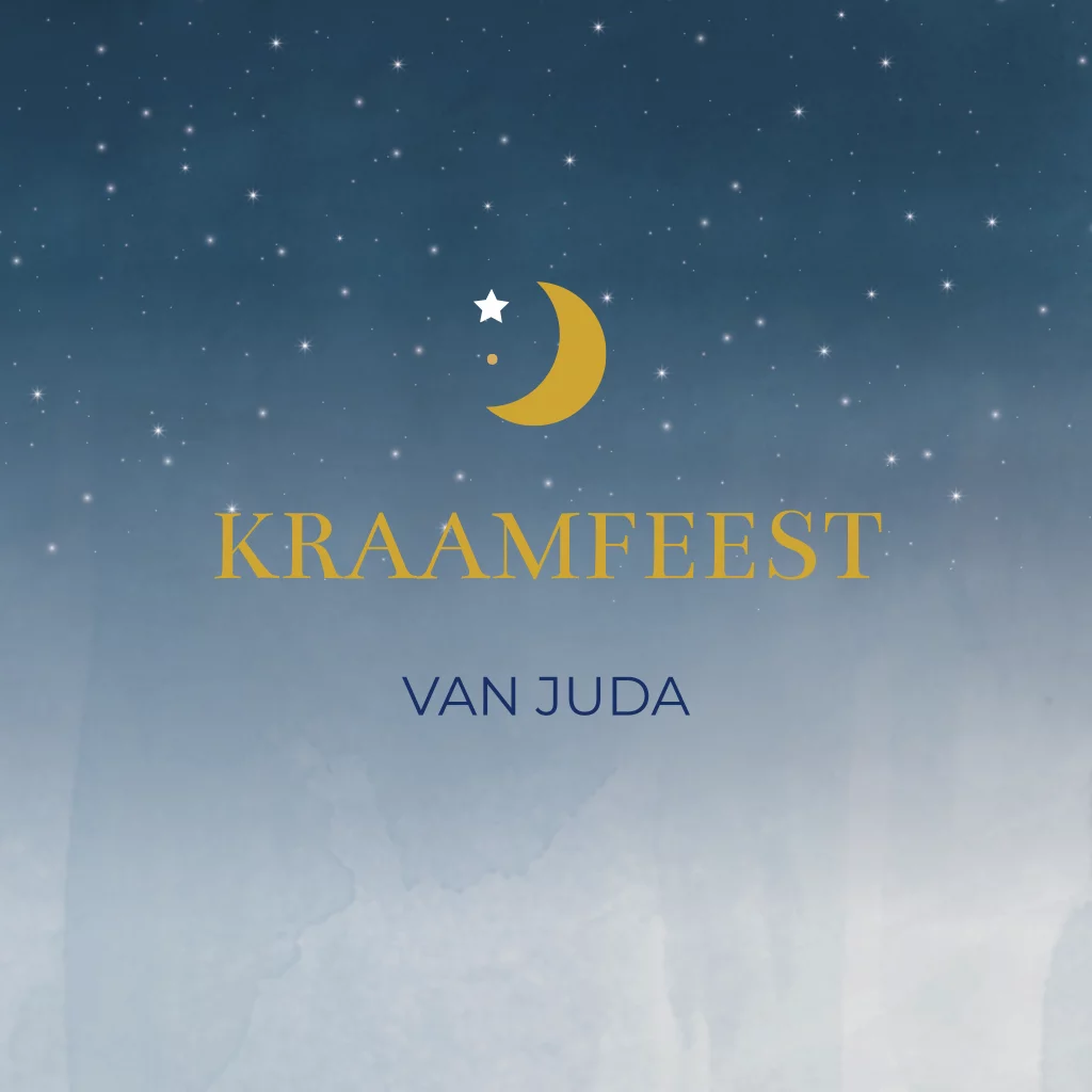 Kraamfeest uitnodiging Juda blauw maan sterren