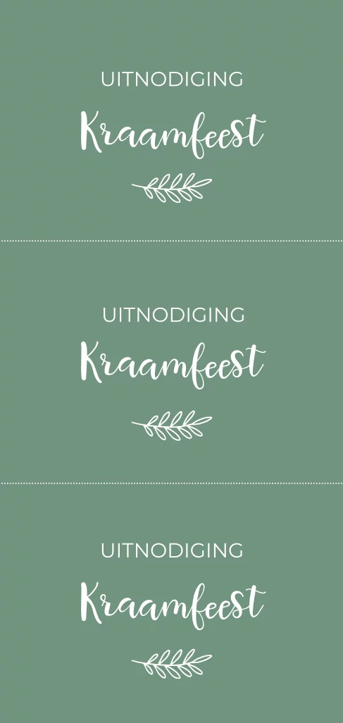 Dit groene kraamfeest kaartje bestaat uit 3 kaartjes van 10x7 cm en voeg je toe bij het bijpassende geboortekaartje. De labels moet je zelf nog uitknippen of snijden. De snijlijnen staan op de voorkant op niet printen. Hierdoor zijn ze in het uiteindelijke ontwerp alleen op de achterzijde zichtbaar. Hierdoor zien de kaartjes er netjes uit als je ze hebt uitgeknipt.