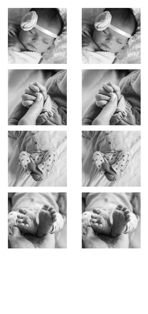 Maak de kaart persoonlijk door te kiezen voor deze DIY fotostrips met foto's van jullie kindje. Deze fotostrips moet je nog wel zelf snijden/knippen. Je kunt ze met een touwtje of paperclip aan de kaart bevestigen. Je kunt de lettertypes en kleuren van het geboortekaartje gebruiken voor de naam en datum onderaan de fotostrip, zodat de kaartjes mooi bij elkaar passen. Tip: Druk dit kaartje af op een formaat van 21x10 cm voor 2 fotostrips van 21x5 cm.