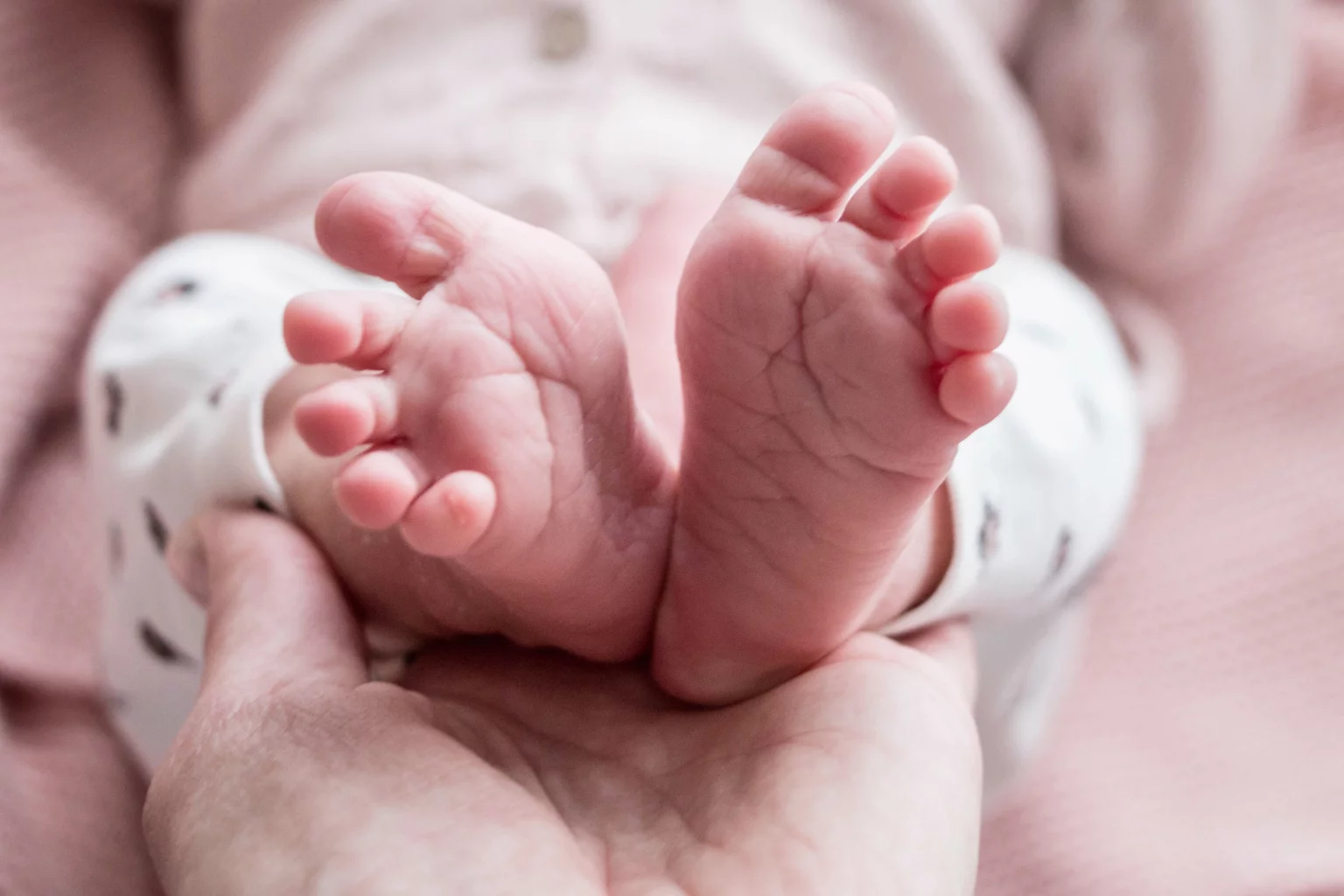 Labels en fotokaartjes voor het geboortekaartje op een rij