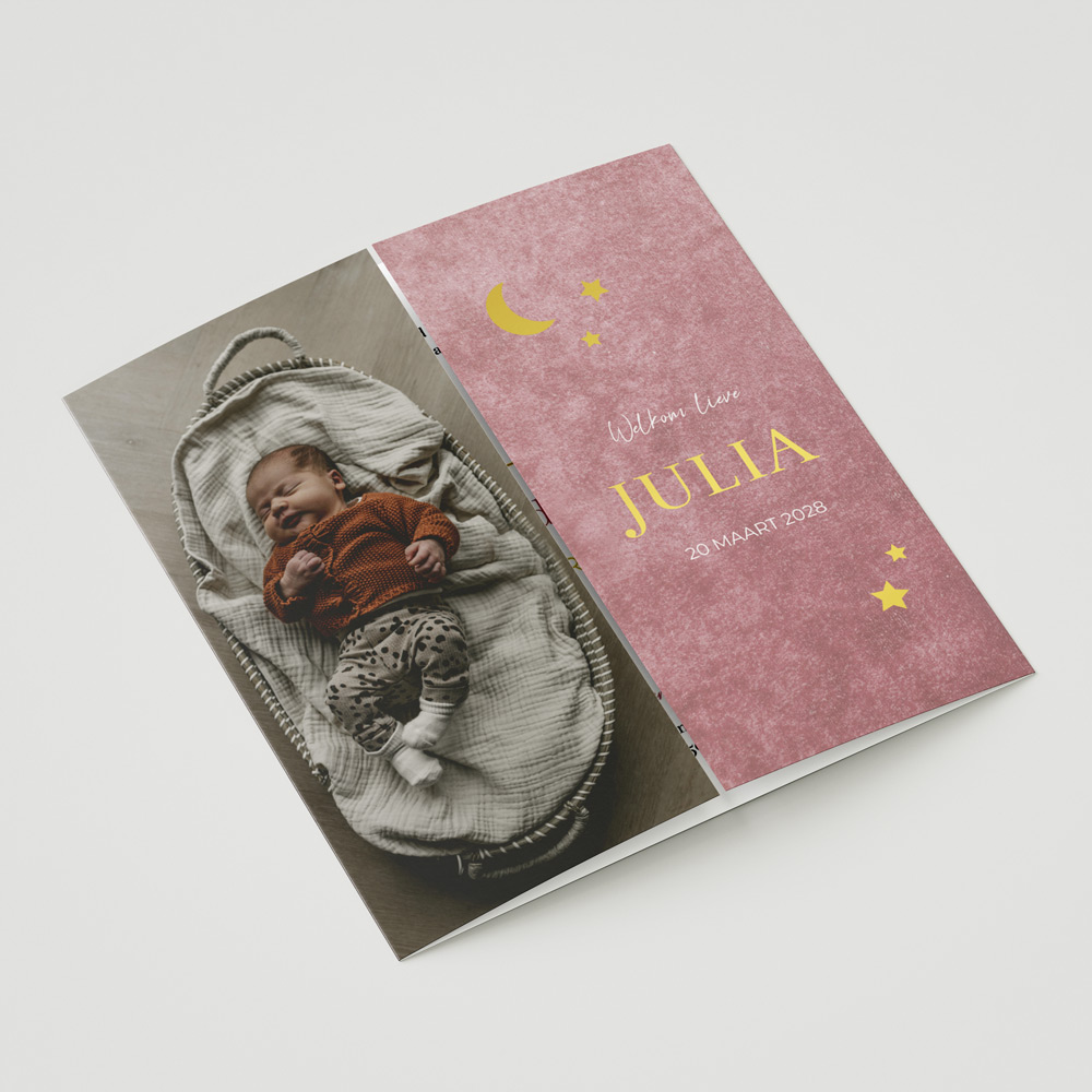 Een unieke vierkant luikvouw geboortekaart met foto en goudfolie. Je kunt de foto op de kaart met luikjes makkelijk vervangen door een foto van jullie kindje. Dit persoonlijke geboortekaartje heeft een groene velvet look achtergrond met goudfolie, maar je kunt de kleuren van de kaart nog naar wens aanpassen. Fotografie: Celebrate Photography.nl