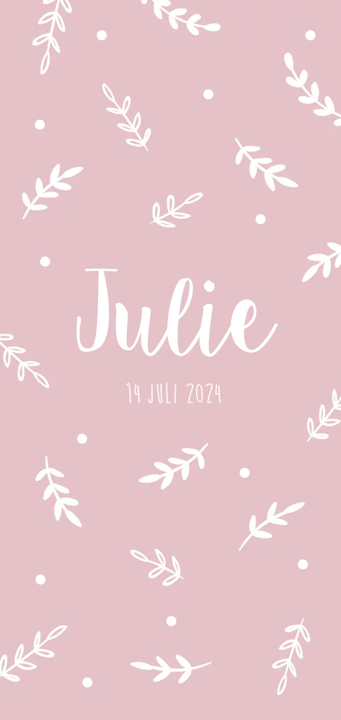 Dit lieve roze geboortekaartje past helemaal in de botanische trend! Het kaartje heeft witte talkjes en stipjes in goudfolie. De kleur van de kaart en de folie kun je naar wens aanpassen.