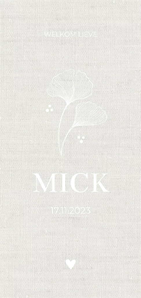 Geboortekaartje linnen look met goudfolie & ginkgo blad