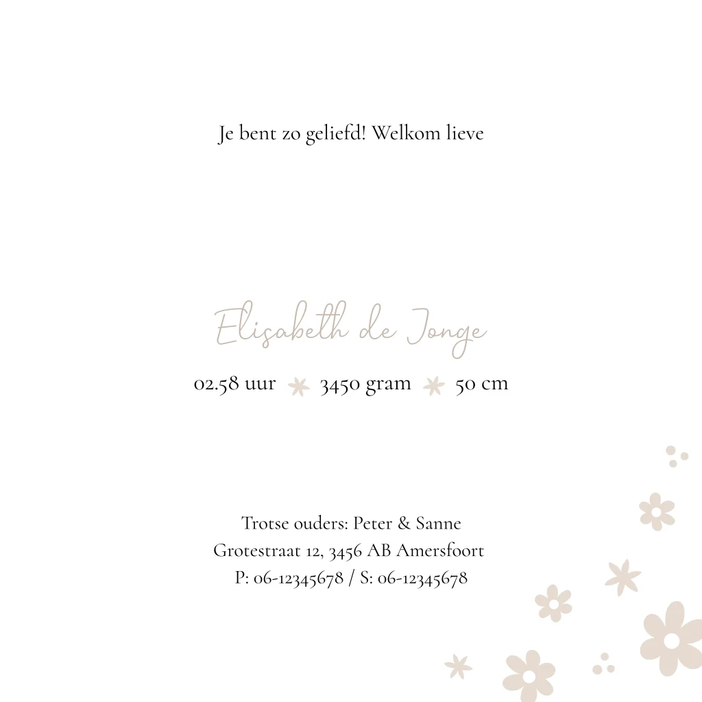 Lief geboortekaartje voor een meisje met madelief bloemen en rosefolie accenten. Aan de voorkant kun je een foto toevoegen van jullie kindje. Aan de binnenzijde is plaats voor een gedichtje. Pas de kleur van de kaart en de folie naar wens aan. Fotografie: Anouk Wubs - www.anoukwubs.nl