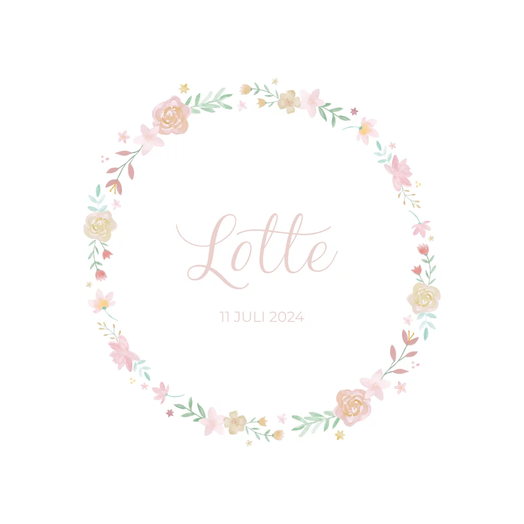 Geboortekaartje meisje romantisch met bloemen krans