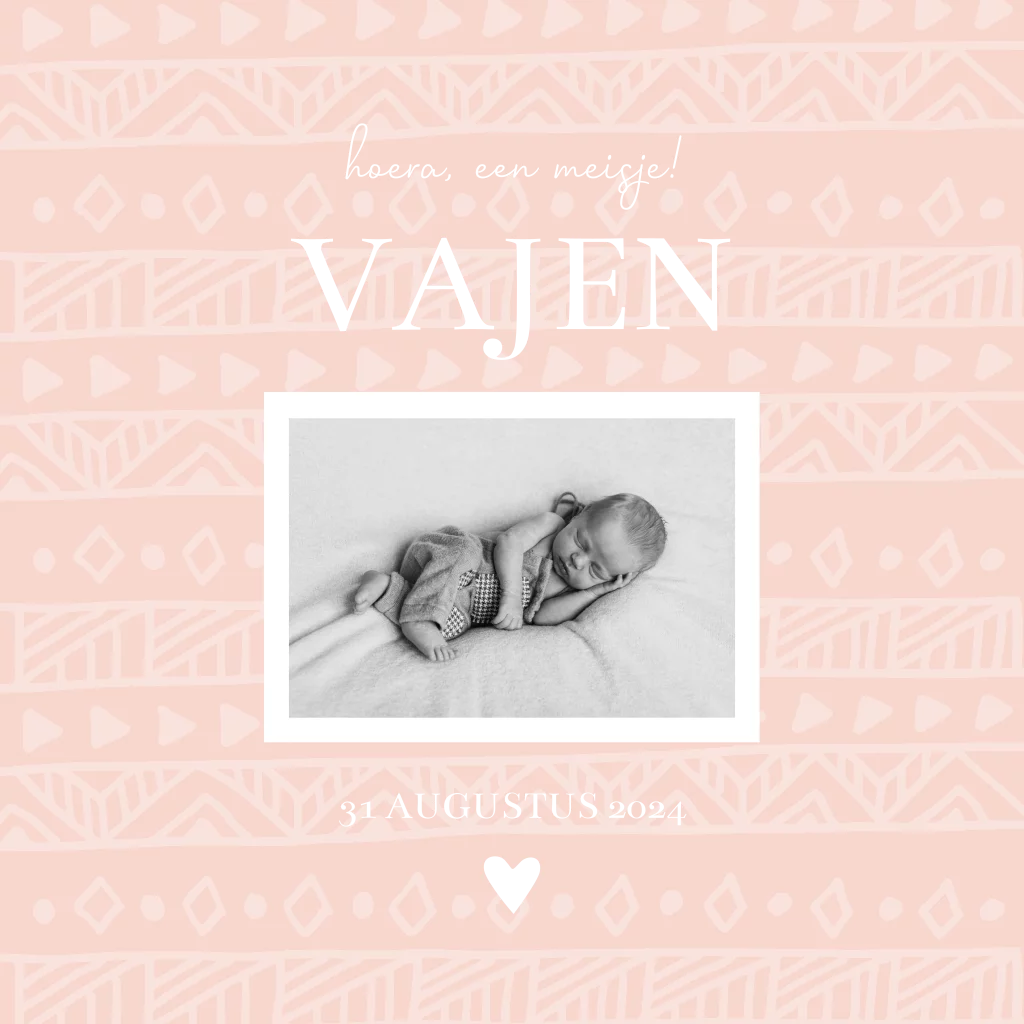 Geboortekaartje meisje met etnisch patroon, foto en goudfolie
