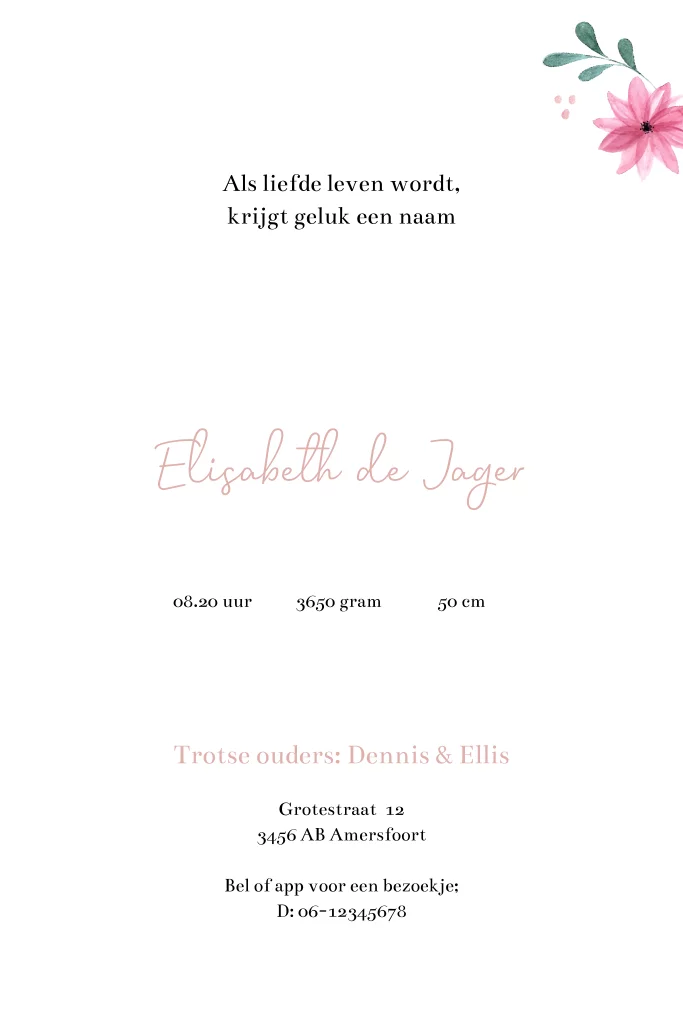 Unieke en persoonlijke geboortekaartjes voor een meisje