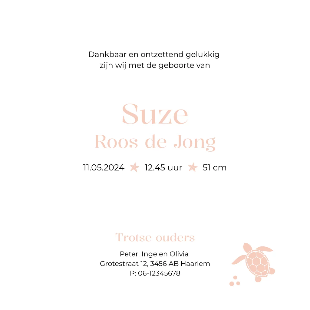 Geboortekaartje meisje oceaan zeedieren schildpad