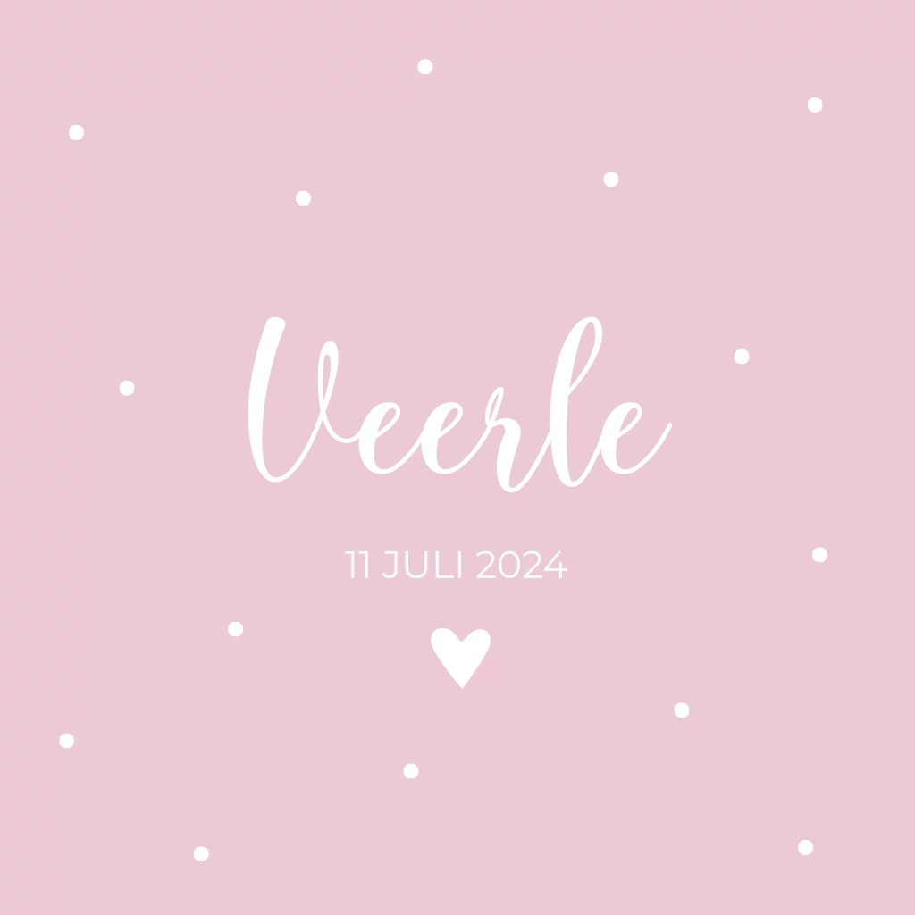 Lief roze geboortekaartje met witte confetti stipjes en goudfolie. Aan de binnenzijde is plek voor een gedichtje. Pas de kleur van de kaart en folie aan naar wens.