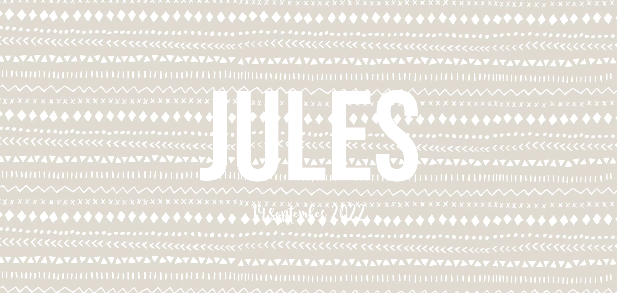 Langwerpig geboortekaartje met een etnisch patroon en de naam in rosefolie op een beige achtergrond. Afgewerkt met ronde hoeken. Pas de kleur van de kaart en de folie naar wens aan.