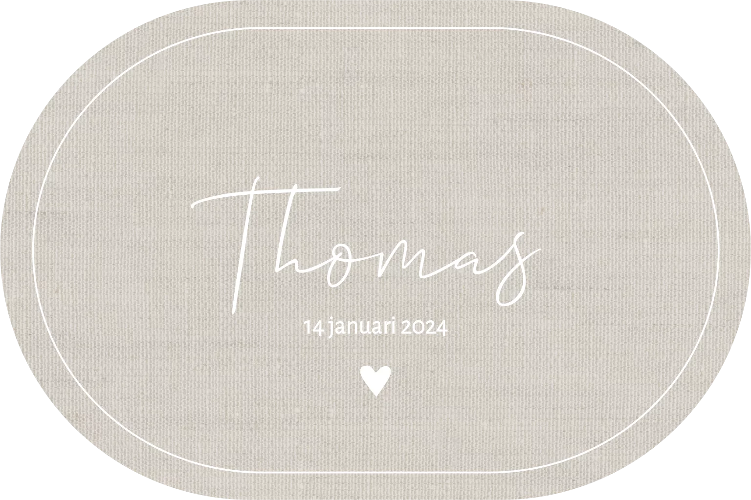 Een lief neutraal enkel geboortekaartje met een linnen look achtergrond. De kaart is gestanst in een ovaal vorm wat de kaart extra uniek maakt! Je kunt de kaart zelf nog helemaal naar wens aanpassen.