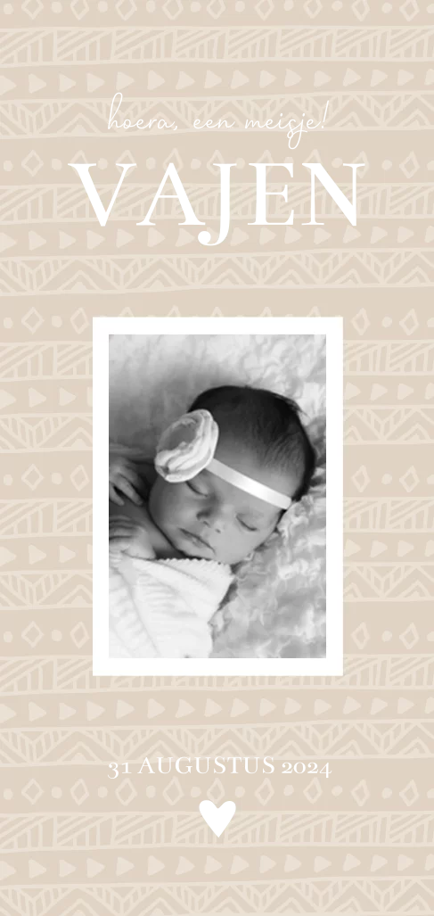 Geboortekaartje meisje met etnisch patroon goudfolie foto neutraal