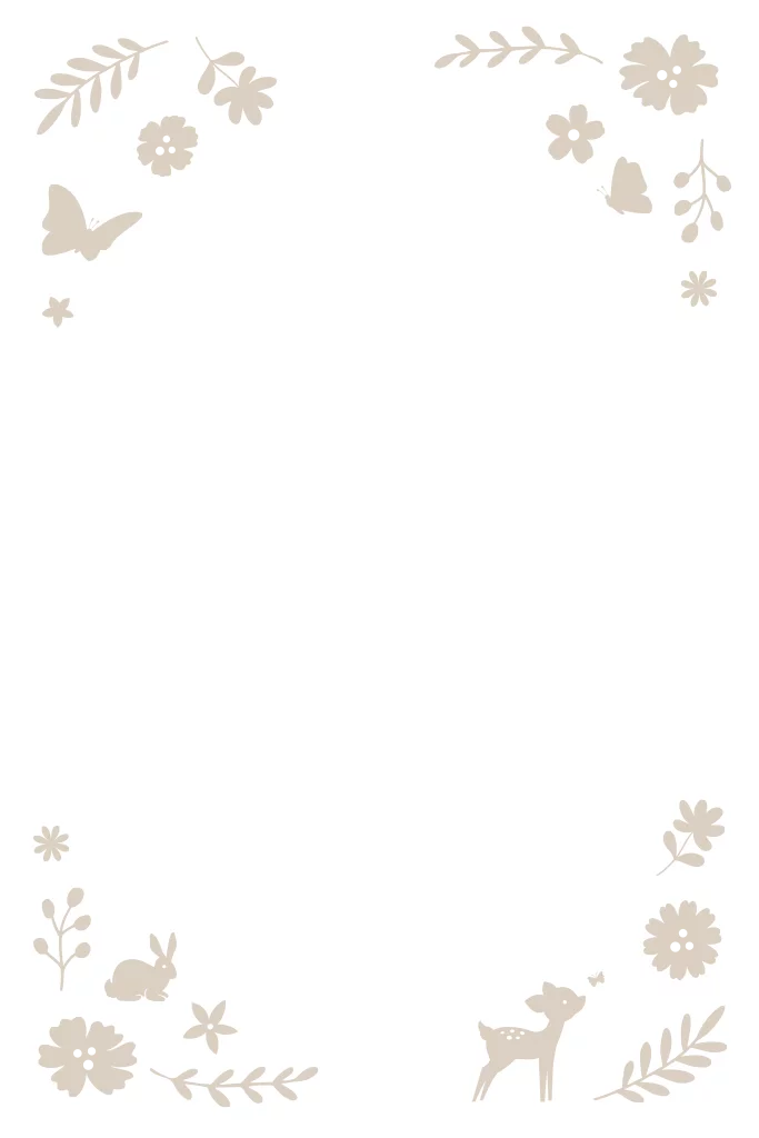 Lief enkel geboortekaartje in een witte kleur met bloemen, takjes en dieren. Afgewerkt met goudfolie en ronde hoeken. Pas de kleur van de kaart naar wens aan.
