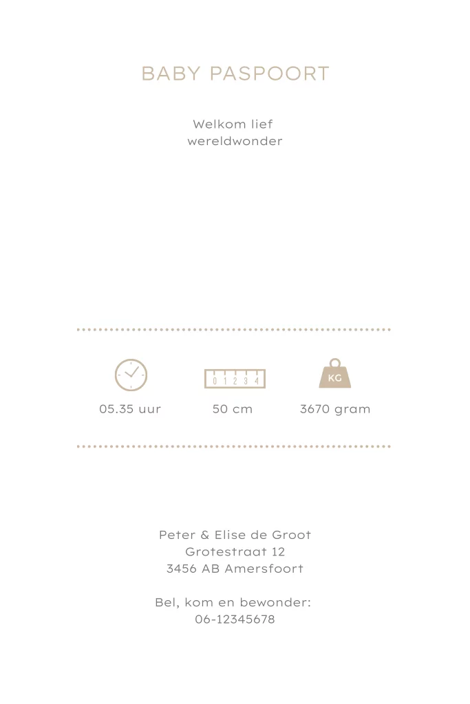 Geboortekaartje meisje paspoort neutraal