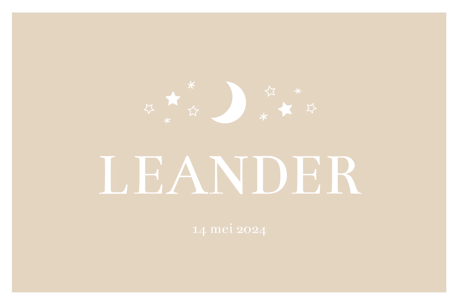Lief enkel geboortekaartje in een beige kleur met een sterrenhemel. Afgewerkt met goudfolie. Pas de kleur van de kaart naar wens aan.