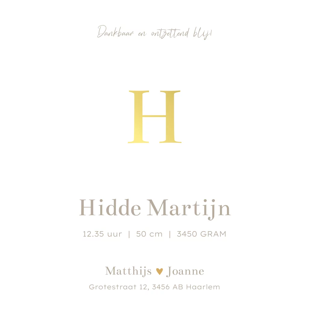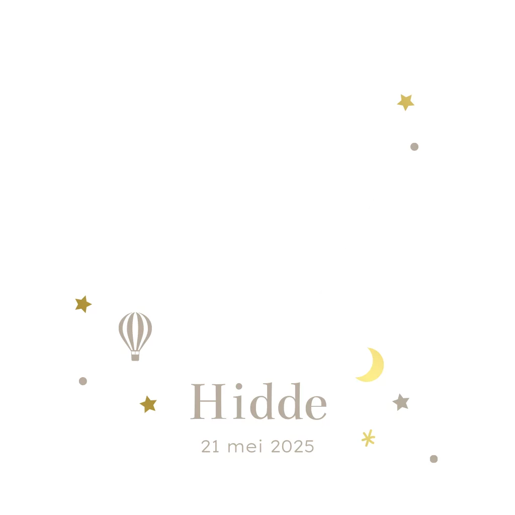Een neutraal geboortekaartje in een uniek formaat met maan en sterren! Het kaartje heeft een doorkijkje met een uitgestanste zeshoek, waardoor je de tekst aan de binnenzijde kunt lezen. Dit unisex geboortekaartje heeft een witte achtergrond en is afgewerkt met goudfolie. Pas de kleuren van de kaart en de folie nog helemaal naar wens aan.