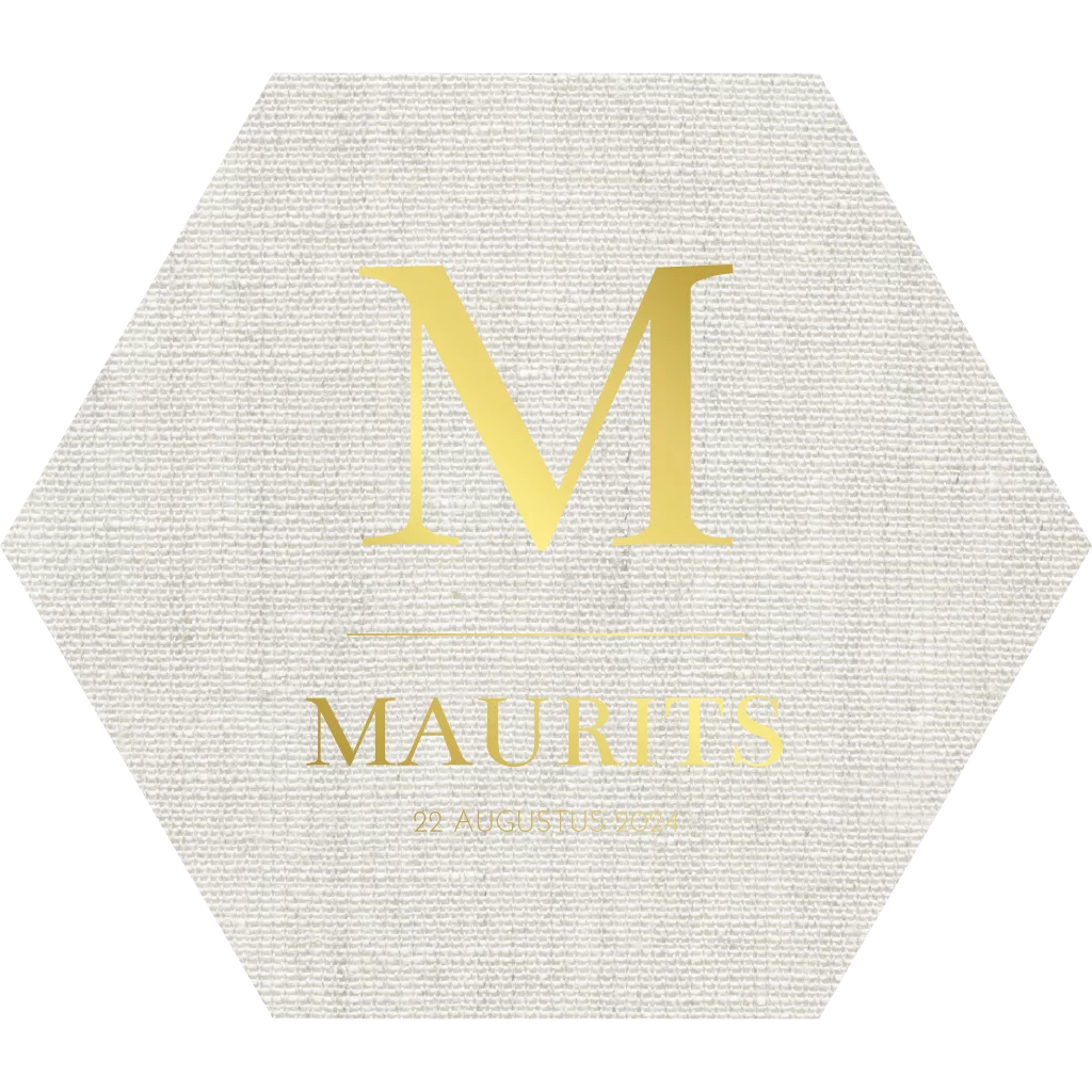 Geboortekaartje zeshoek linnen neutraal goudfolie