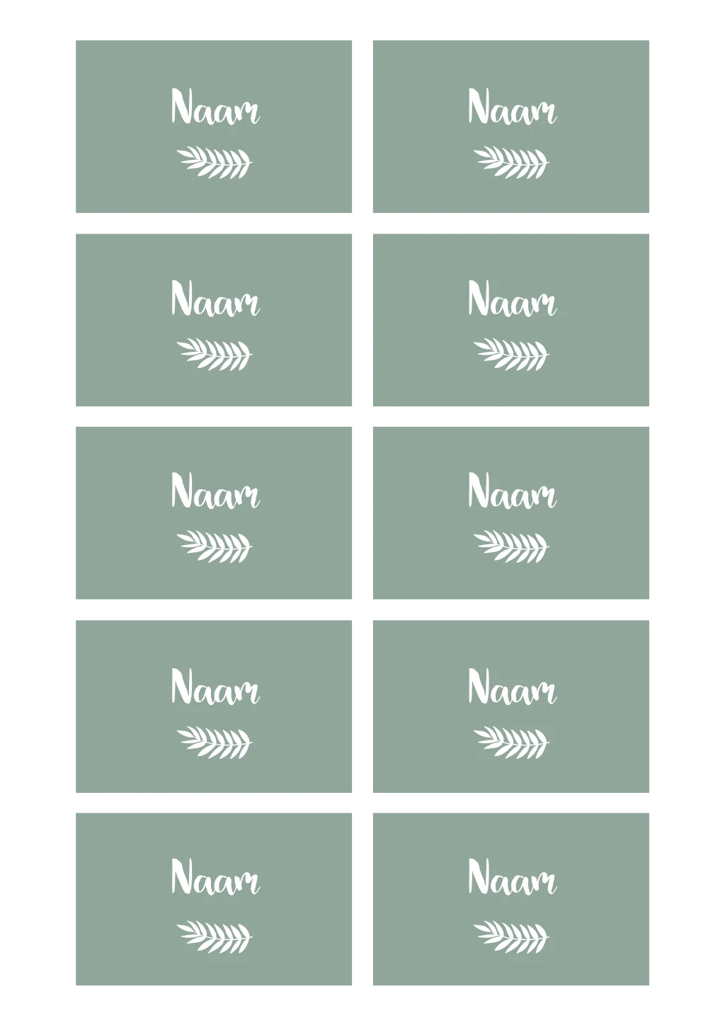 Naamkaartjes met groene kleur en botanische takjes, aan te passen naar de stijl van jullie trouwkaart. Formaat: 8x5 cm (visitekaartje), enkelzijdig bedrukt.