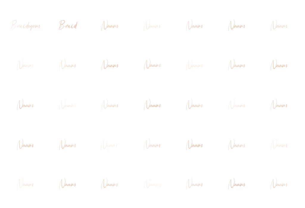 Naamkaartjes voor jullie bruiloft in de stijl van de trouwkaart. Dit is een vel met 35 stuks ronde naamkaartjes en je kunt in de editor alle namen op het vel tegelijk invullen. De naamkaartjes hebben een formaat van 5x5 cm en hebben een klein gaatje. Je kunt de kaartjes bijvoorbeeld vastbinden met een touwtje om een servet heen.