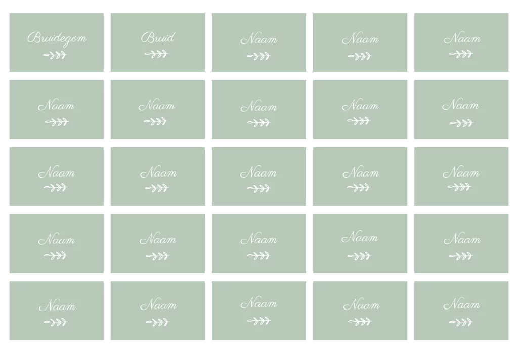 Deze 25 groene naamkaartjes met takje en mintgroene kleur zijn 8x5 cm (formaat visitekaartje). Je past de namen en de kleur van het kaartje gemakkelijk zelf aan.