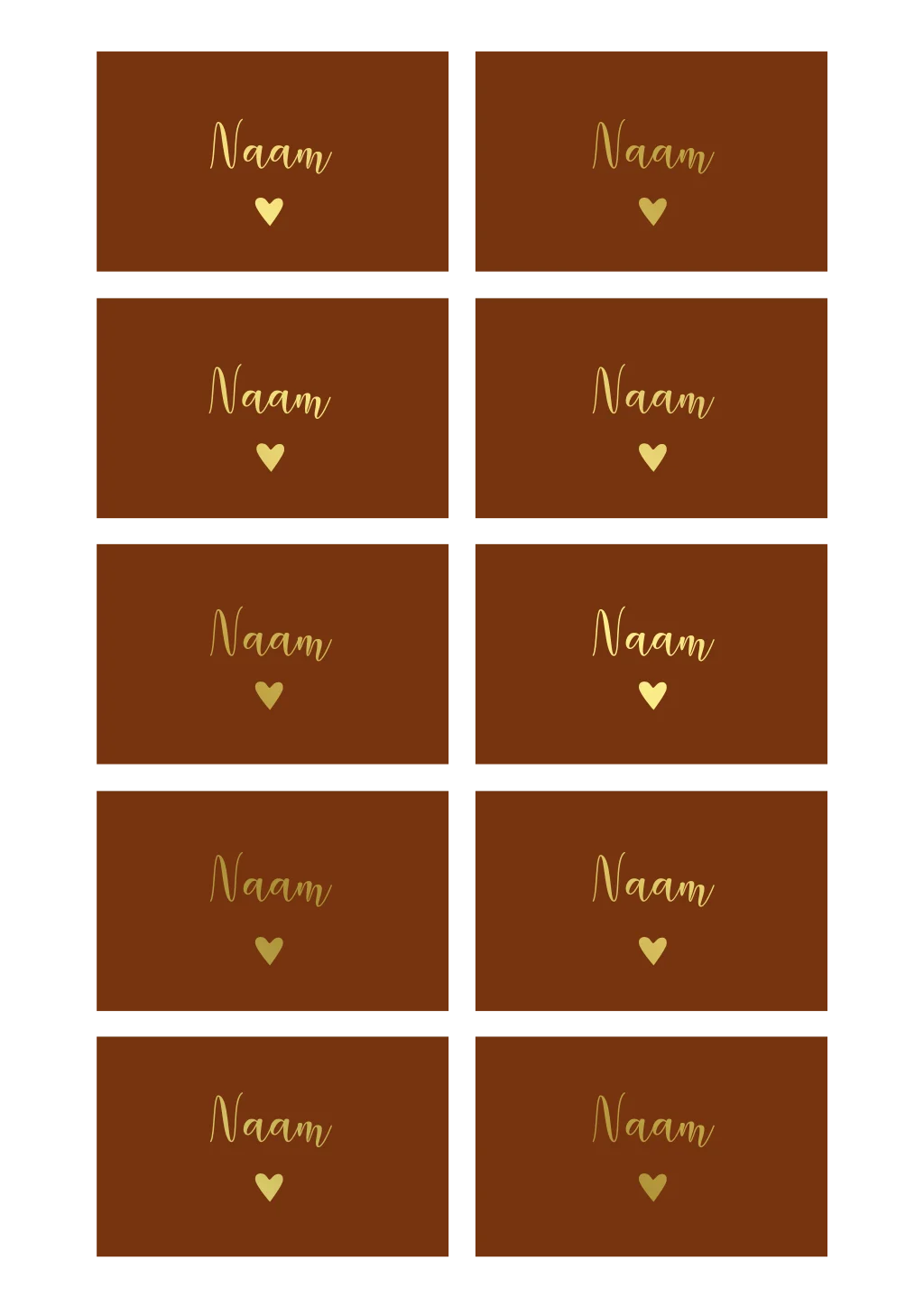 Roest rode naamkaartjes met hartje en goudfolie, aan te passen naar de stijl van jullie trouwkaart. Formaat: 8x5 cm (visitekaartje), enkelzijdig bedrukt.| Totaalprijs: 0 |