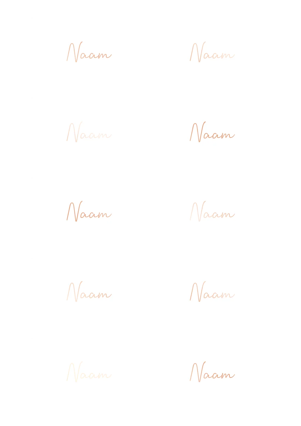 Naamkaartjes met sierlijke letters in rosefolie, aan te passen naar de stijl van jullie trouwkaart. Formaat: 8x5 cm (visitekaartje), enkelzijdig bedrukt.