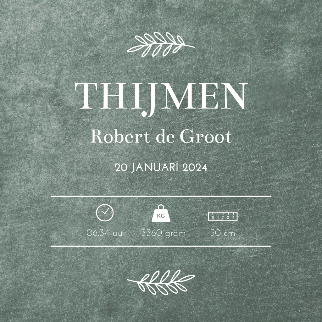 Geboorteposter jongen velvet look groen - Thijmen