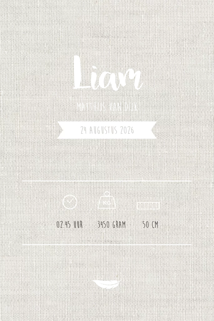 Geboorteposter jongen linnen look met goudfolie - Liam