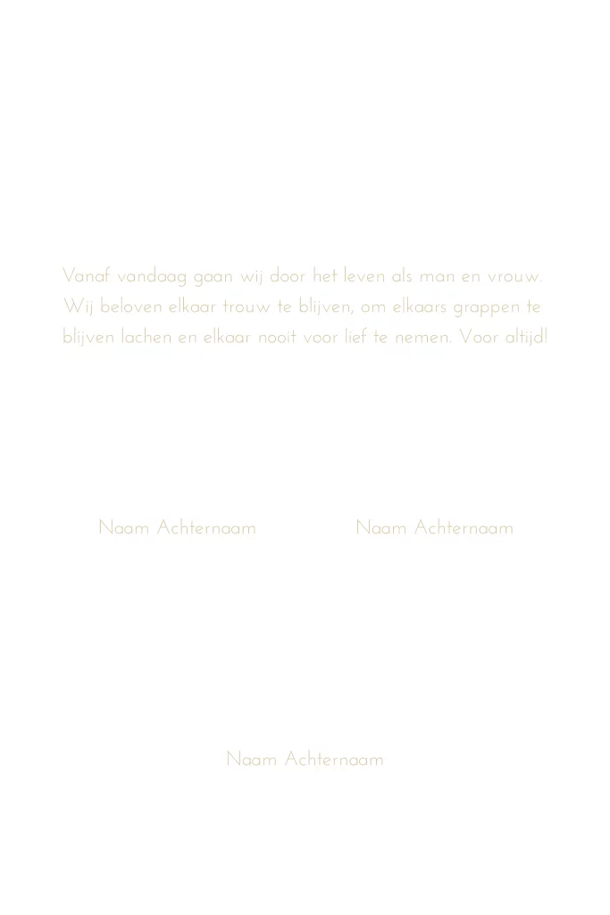Maak jullie eigen trouwakte voor tijdens de ceremonie van jullie bruiloft. Helemaal in de stijl van jullie trouwkaart, zodat alles mooi bij elkaar past! Deze trouwakte past bij de trouwhuisstijl Golden days.