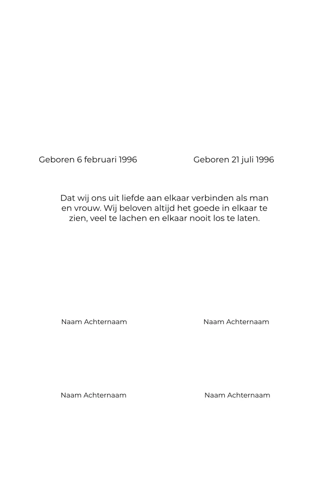 Maak jullie eigen trouwakte voor tijdens de ceremonie van jullie bruiloft. Helemaal in de stijl van jullie trouwkaart, zodat alles mooi bij elkaar past! Deze trouwakte past bij de trouwhuisstijl Golden lettering.