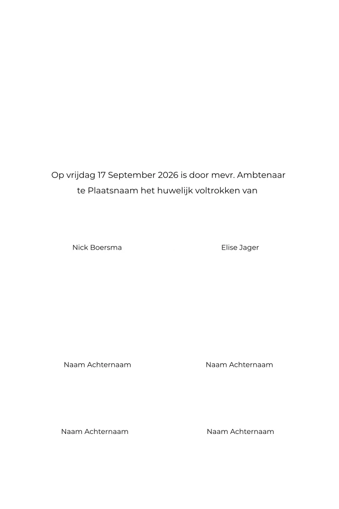 Maak jullie eigen trouwakte voor tijdens de ceremonie van jullie bruiloft. Helemaal in de stijl van jullie trouwkaart, zodat alles mooi bij elkaar past! Deze trouwakte past bij de trouwhuisstijl Layers of love.