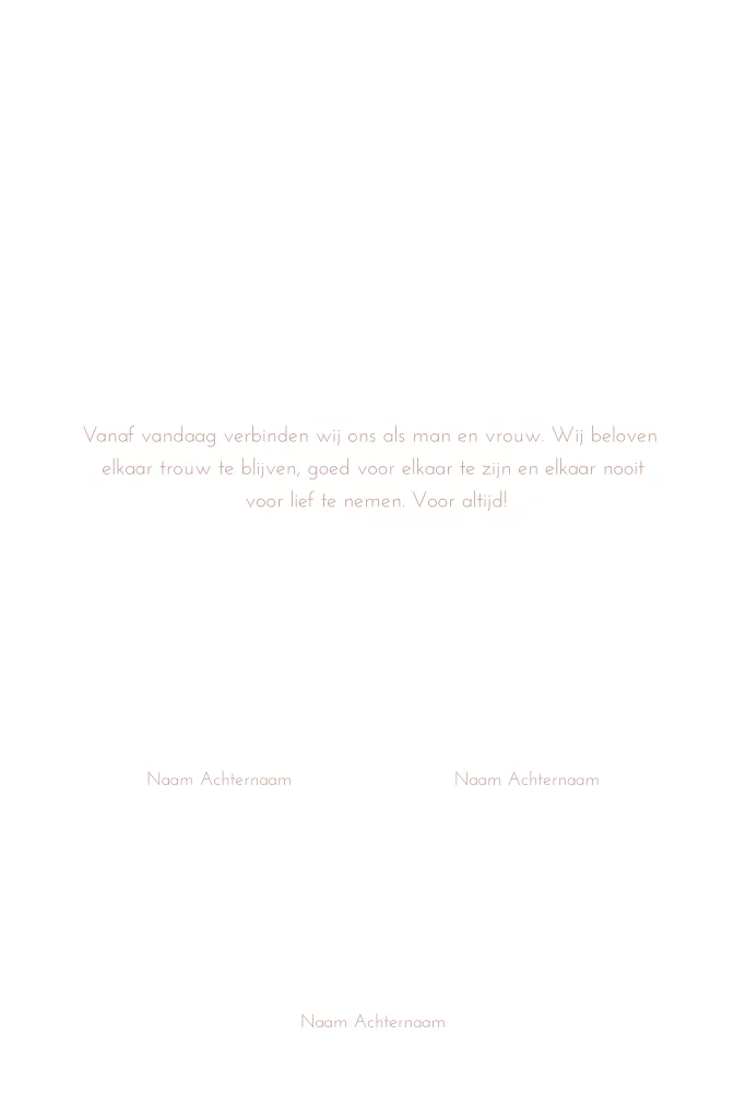 Maak jullie eigen trouwakte voor tijdens de ceremonie van jullie bruiloft. Helemaal in de stijl van jullie trouwkaart, zodat alles mooi bij elkaar past! Deze trouwakte past bij de trouwhuisstijl Romantic Peach.