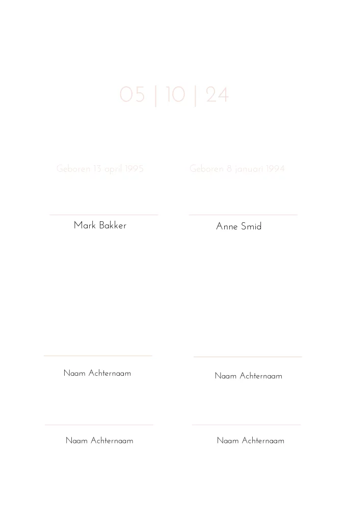 Maak jullie eigen trouwakte voor tijdens de ceremonie van jullie bruiloft. Helemaal in de stijl van jullie trouwkaart, zodat alles mooi bij elkaar past! Deze trouwakte past bij de trouwhuisstijl Yes we do.