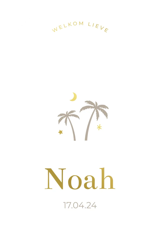 Geboortekaartje neutraal stans vorm boog modern palmboom goudfolie