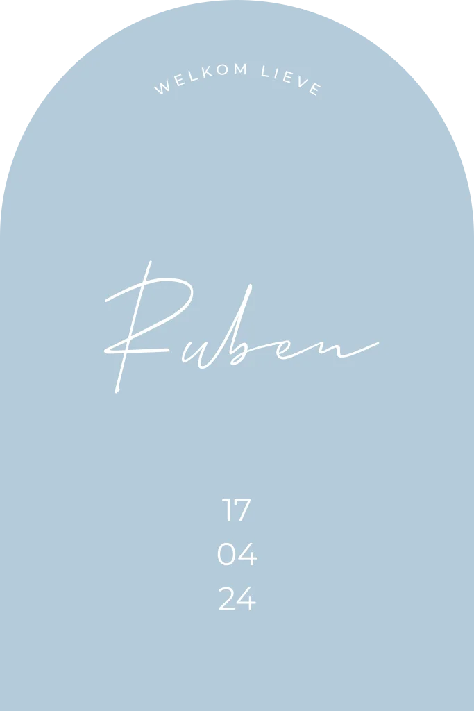 Moderne lichtblauwe kaart met witte letters. De kaart is gestanst in een boog vorm wat de kaart extra uniek maakt! De kleur van de kaart kun je aanpassen naar wens.