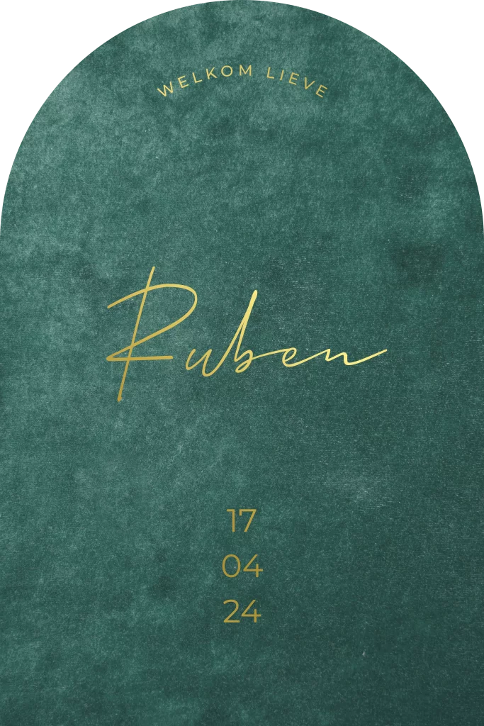 Geboortekaartje jongen boog vorm donkergroen velvet met goudfolie