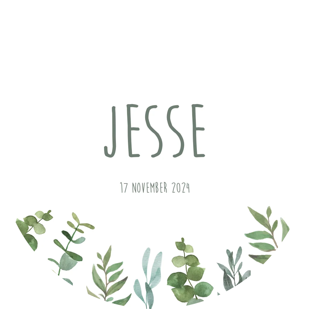 Geboortekaartje jongen stans vorm rond met botanische takjes