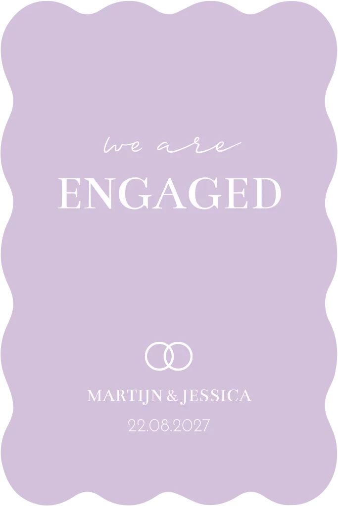 Moderne verlovingskaart met golfvorm in een mooie lila kleur. Op de achterzijde is plaats voor een verlovingsfeest uitnodiging. Pas de kleur van de kaart naar wens aan.