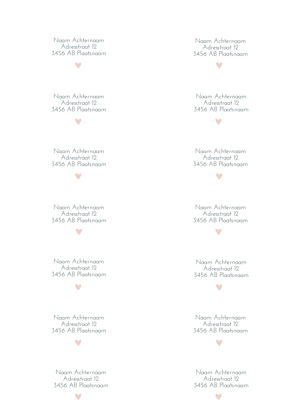 Maak zelf de adresstickers voor op de envelop van jullie trouwkaart! De adresstickers hebben een formaat van 97x34 mm en zijn afgewerkt met ronde hoeken. Er zitten 14 stuks op een vel.
